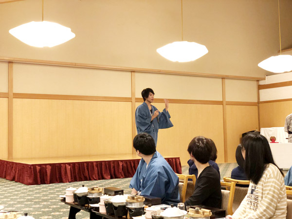 夜の宴会では社長のあいさつで始まり、無礼講での交流会となっております。ビンゴ大会なども催され、豪華な景品も用意されております。